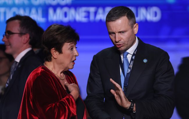 Міністр фінансів України Сергій Марченко та директор-розпорядник МВФ Крісталіна Георгієва (фото: Getty Images)