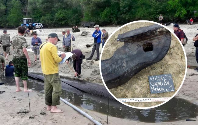 Під час чергового обстеження на раніше затопленій ділянці берега науковці знайшли довбаний човен, виготовлений з цільного стовбура дуба, довжиною майже 7 м.