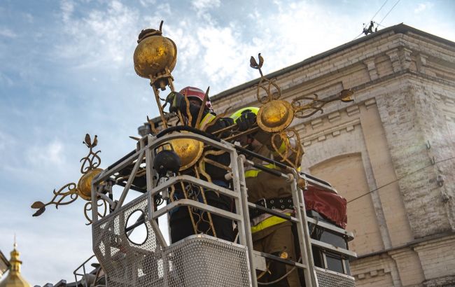 08.03.2025 - 18:03 У Києві на куполі одного з храмів Лаври частково завалився хрест, його демонтували