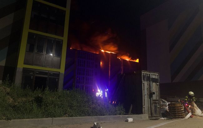 Горит крыша и слетает обшивка: в Киеве пожар в недостроенном доме
