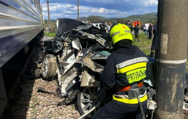 21.04.2025 - 11:51 На Закарпатті Audi A8 зіткнулась з поїздом, який йшов з Києва: є постраждалий (фото)