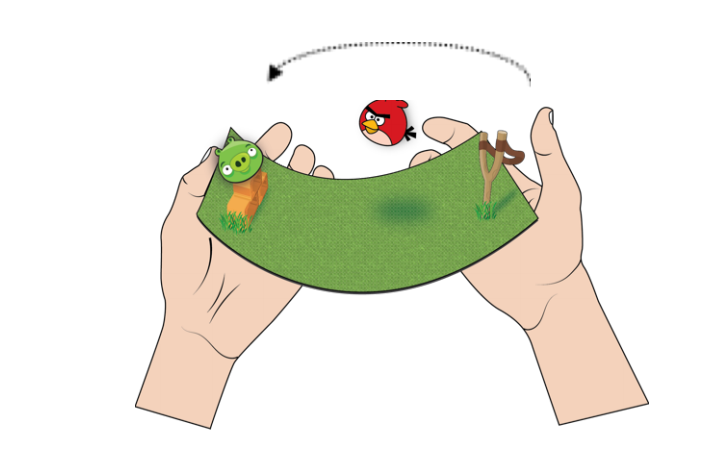 "Выгибая дисплей, можно отодвигать, приближать к себе объекты и даже их редактировать. В игре Angry Birds сгибанием можно стрелять. Другая демонстрация тоже впечатляет: разработчики показали возможность листать страницы сгибанием", - говорится в сообщении Human Media Lab.