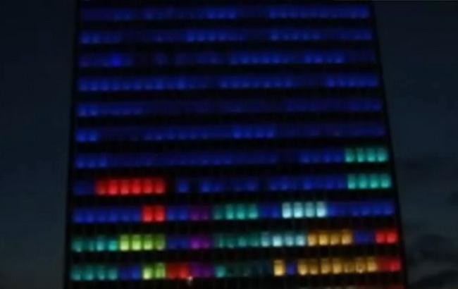 В каждом окне здания будущие "айтишники" разместили светодиодные лампы