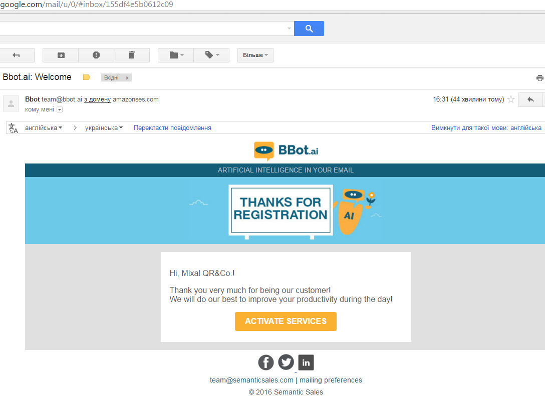 Фото: украинский бизнес-бот поддерживает почтовый сервис Gmail (BBot.ai)