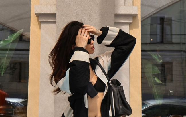 Total black і атлас: дружина Усика показала один із головних модних трендів сезону