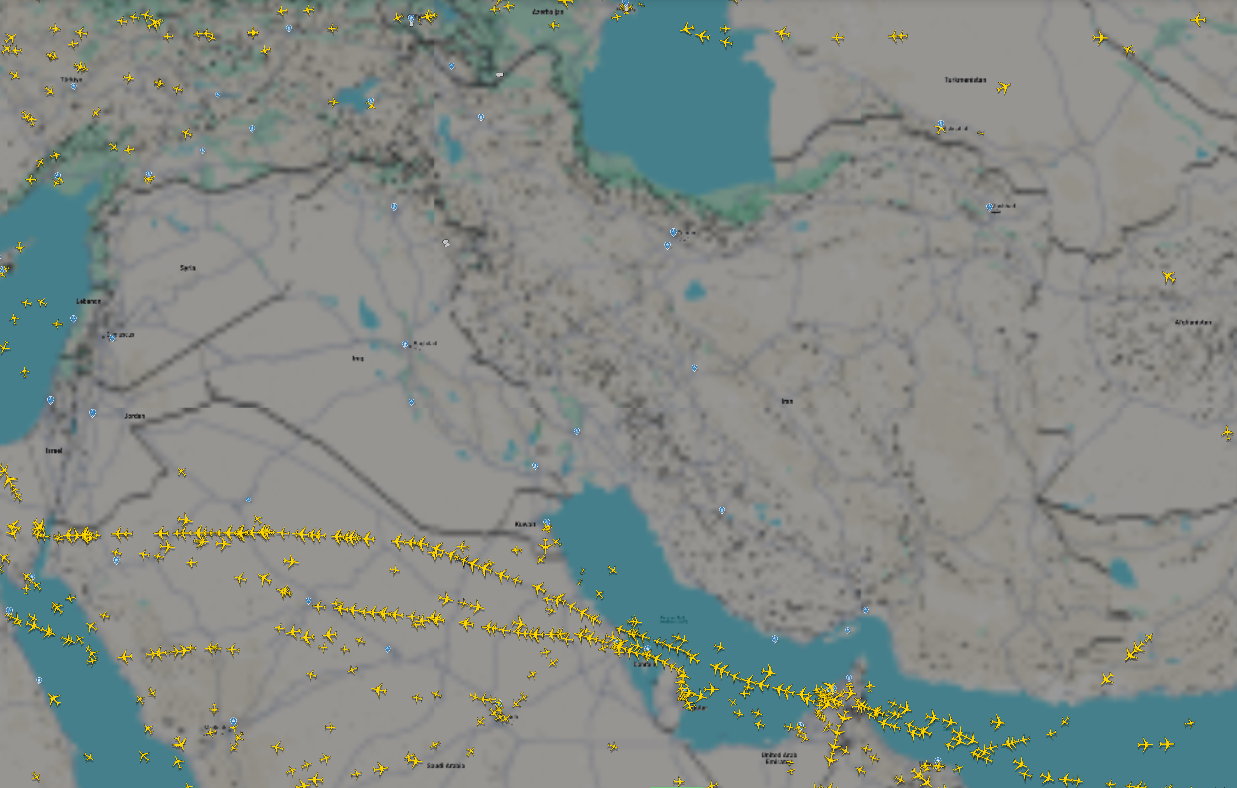 На сході Іраку, недалеко від кордону з Іраном, проходить один із найзавантаженіших повітряних коридорів у світі: у будь-який момент часу між Європою і Перською затокою здійснюють десятки рейсів, багато з яких прямують з Азії в Європу.