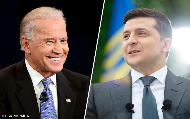 Коллаж РБК-Украина: Джо Байден и Владимир Зеленский