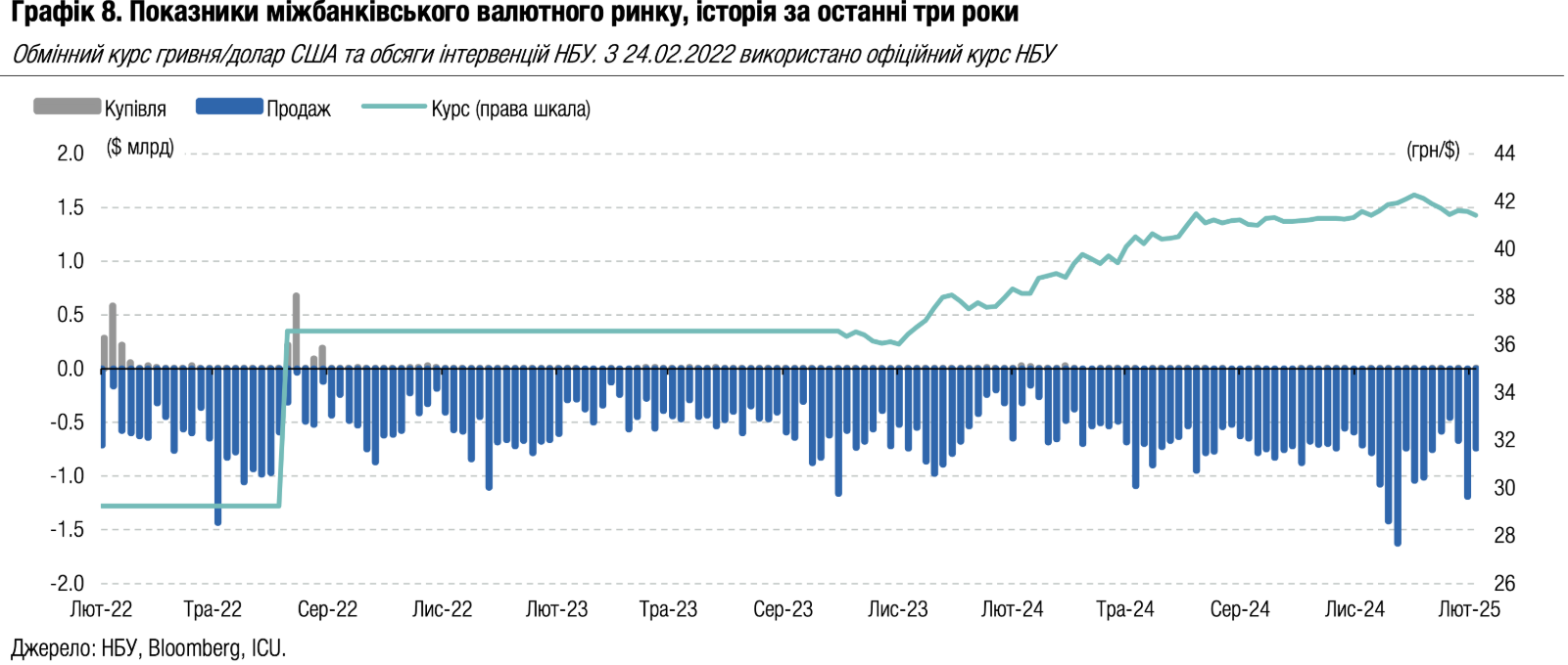 Водночас дефіцит валюти на ринку залишався значним, що не завадило НБУ посилити офіційний курс гривні до нового рекорду цього року. Завдяки меншому дефіциту валюти НБУ минулого тижня знизив обсяг інтервенцій на 38%, проте він залишався значним на рівні 742 млн доларів.