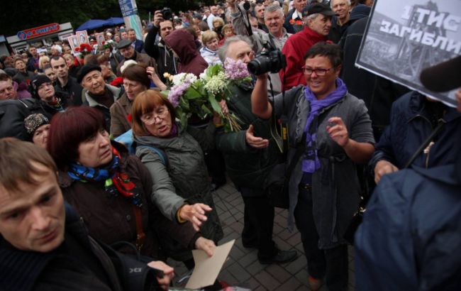 Возле здания ОУН неизвестные лица зажгли дымовую шашку. После этого колонна, в которой шли по большей части пожилые люди, продолжила шествие.