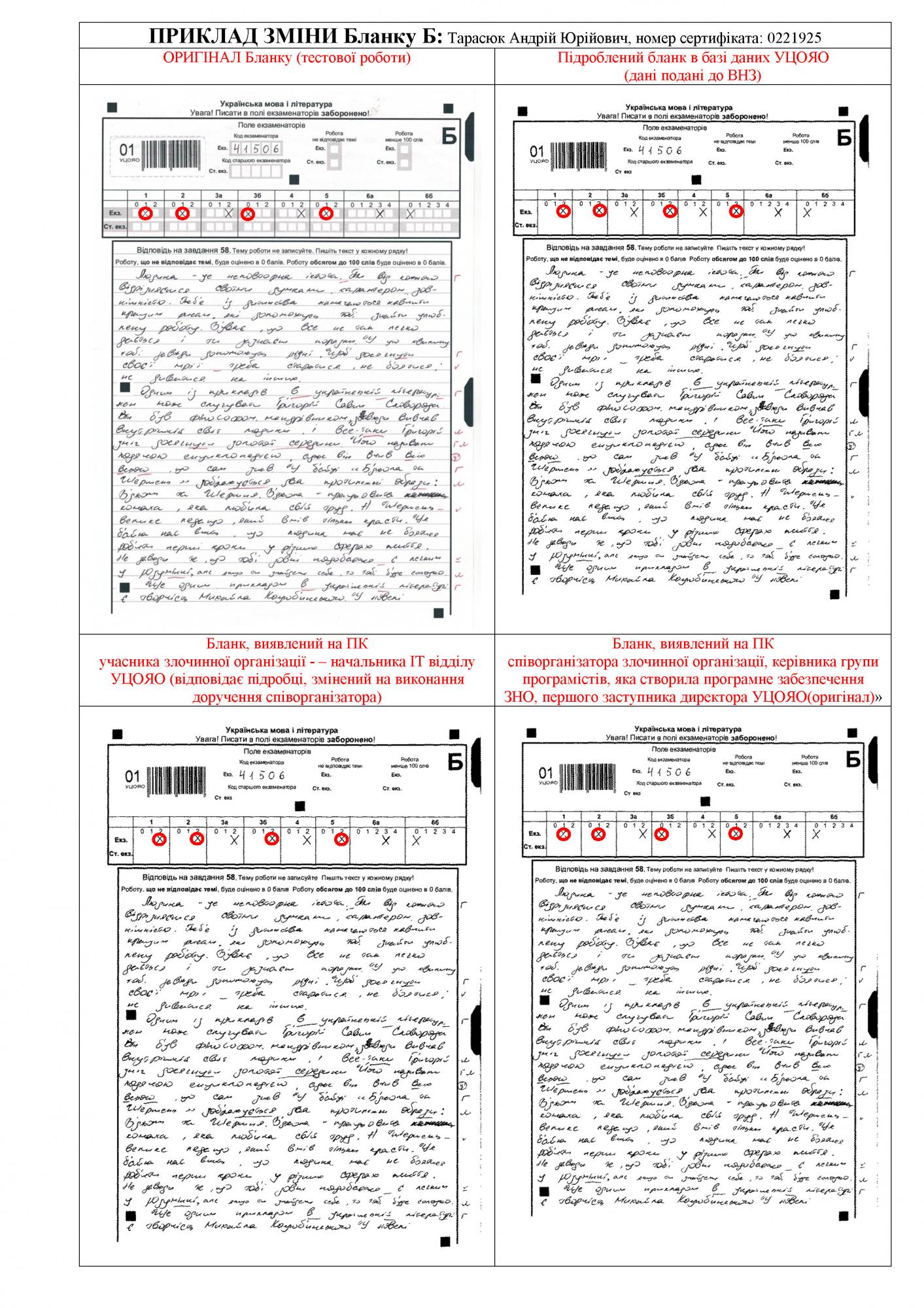 Фото: примеры изменения результатов ВНО (пресс-служба ГПУ)