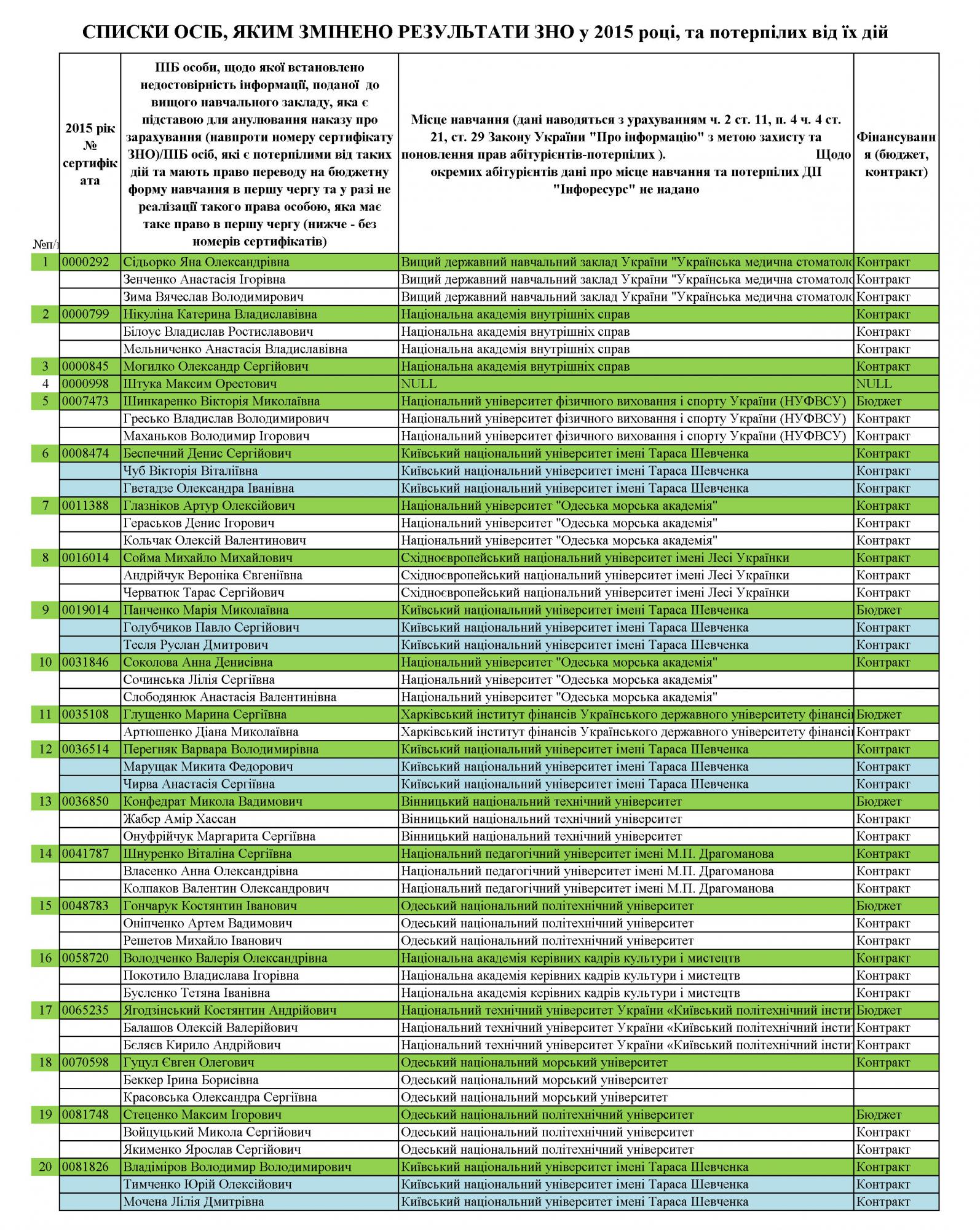 "Завышение результатов ВНО дало незаконные преимущества в доступе к высшему образованию сотням абитуриентов, преимущественно детей руководителей органов государственной власти высшего уровня, правоохранительных органов, работников системы образования, народных депутатов Украины и их помощников, и ограничило возможность получения образования талантливой молодежью, которая имела на это законное право", - говорится в сообщении.