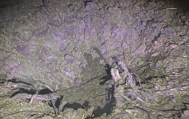 Фото: місце влучання бомби у селі Чайківка Харківської області (t.me/AlexsAlexs_G)
