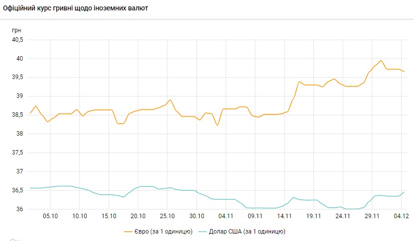 Офіційний курс на 4 грудня 2023 року встановлено на такому рівні: 36,4606 грн. за 1 долар (+0,1071 грн.).