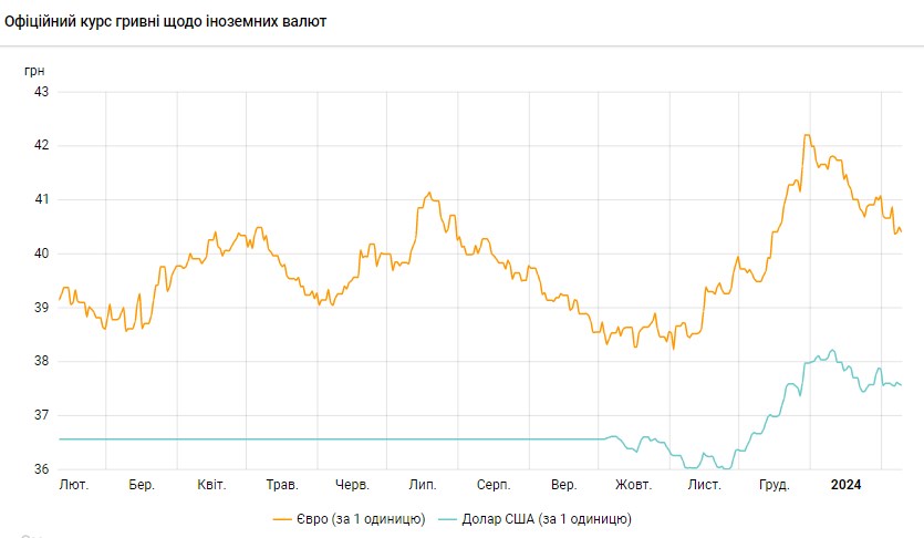 Офіційний курс на 9 лютого 2024 року встановлено на такому рівні: 37,5707 грн за 1 долар (-0,0230 грн).