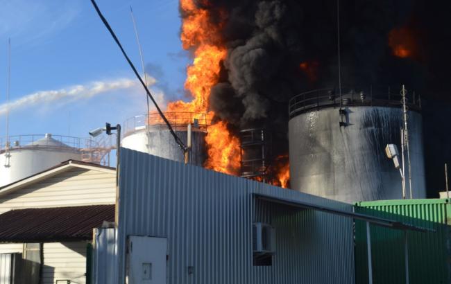 Фото: пожар на нефтебазе под Васильковым