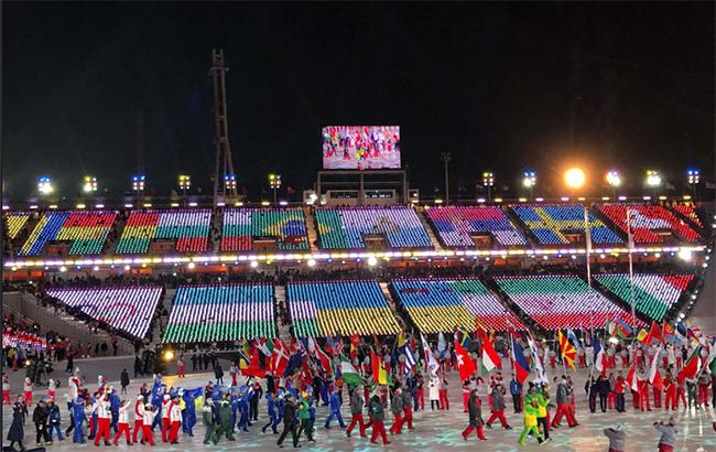В "Параде наций" принимают участие атлеты из 92 стран. Церемония происходит на The Pyeongchang Olympic Stadium. Украинский флаг несет олимпийский чемпион в лыжной акробатике Александр Абраменко.