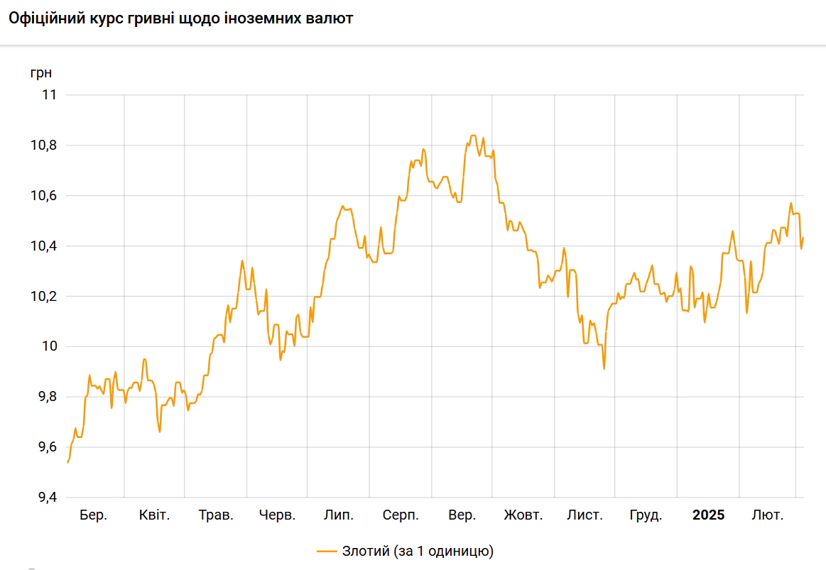 Офіційний курс на 4 березня 2025 року встановлено на такому рівні: 10,4382 гривень за 1 злотий (+0,0492 грн).
