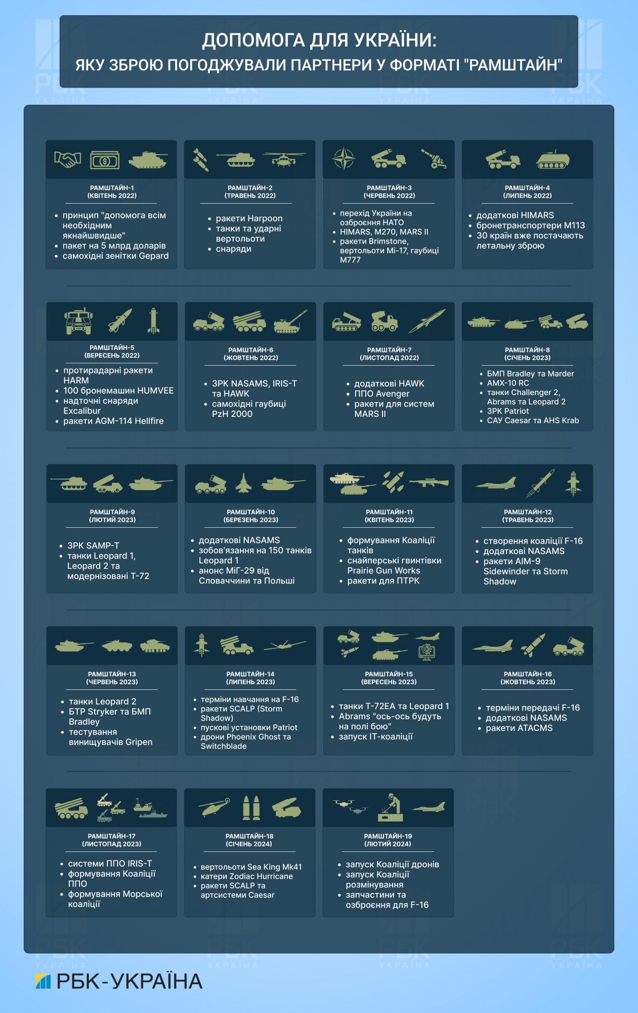 Фото: головні анонси засідань у форматі "Рамштайн" (інфографіка РБК-Україна)