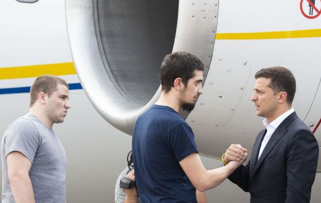 Фото: встреча освобожденных моряков в сентябре 2019 года (president.gov.ua)