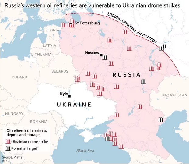 Хеліма Крофт, колишній аналітик ЦРУ, яка нині працює в RBC Capital Markets, нещодавно зазначила, що Україна продемонструвала, що може завдати удару здебільшого інфраструктури експорту нафти на заході Росії, поставивши під загрозу близько 60% експорту країни.