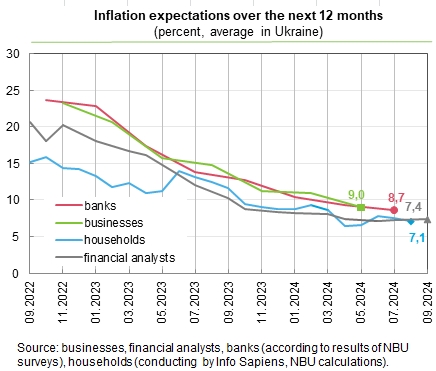 За інформацією НБУ, у вересні фінансові аналітики прогнозують зростання цін на рівні 7,4%. Це вище, аніж попередній прогноз за липень (7,2%).