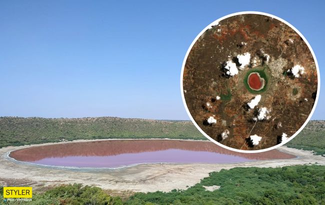 В Индии метеоритное озеро-кратер изменило цвет за одну ночь: зрелищные фото