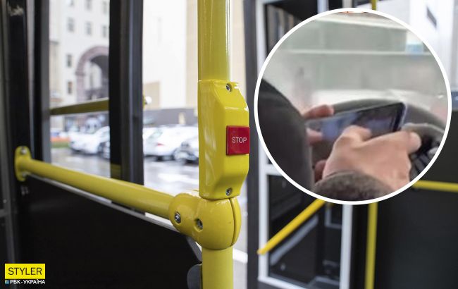 В Киеве водитель маршрутки во время движения играл в игры на телефоне (коллаж РБК-Украина)