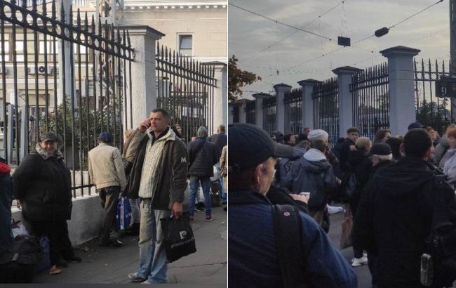 З'явилися фото, як на вулиці маса громадян стоїть біля паркану, і їхня кількість тільки збільшується.