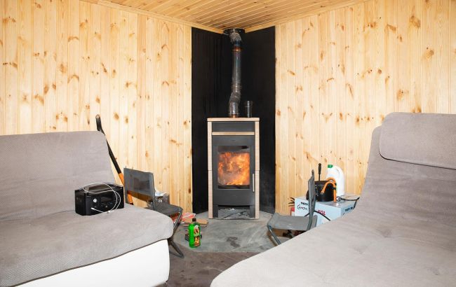 Стіни у ньому оббиті вагонкою, облаштована система вентиляції, є камін, WI-FI, м'які меблі, біотуалет та запаси води.