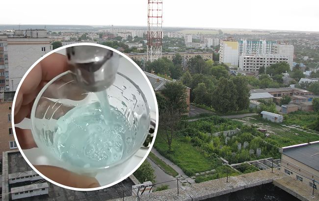 "Я такого ще не бачила!" У місті під Києвом з кранів полилася блакитна вода (відео) У Фастові з кранів полилася блакитна вода (колаж: РБК-Україна)