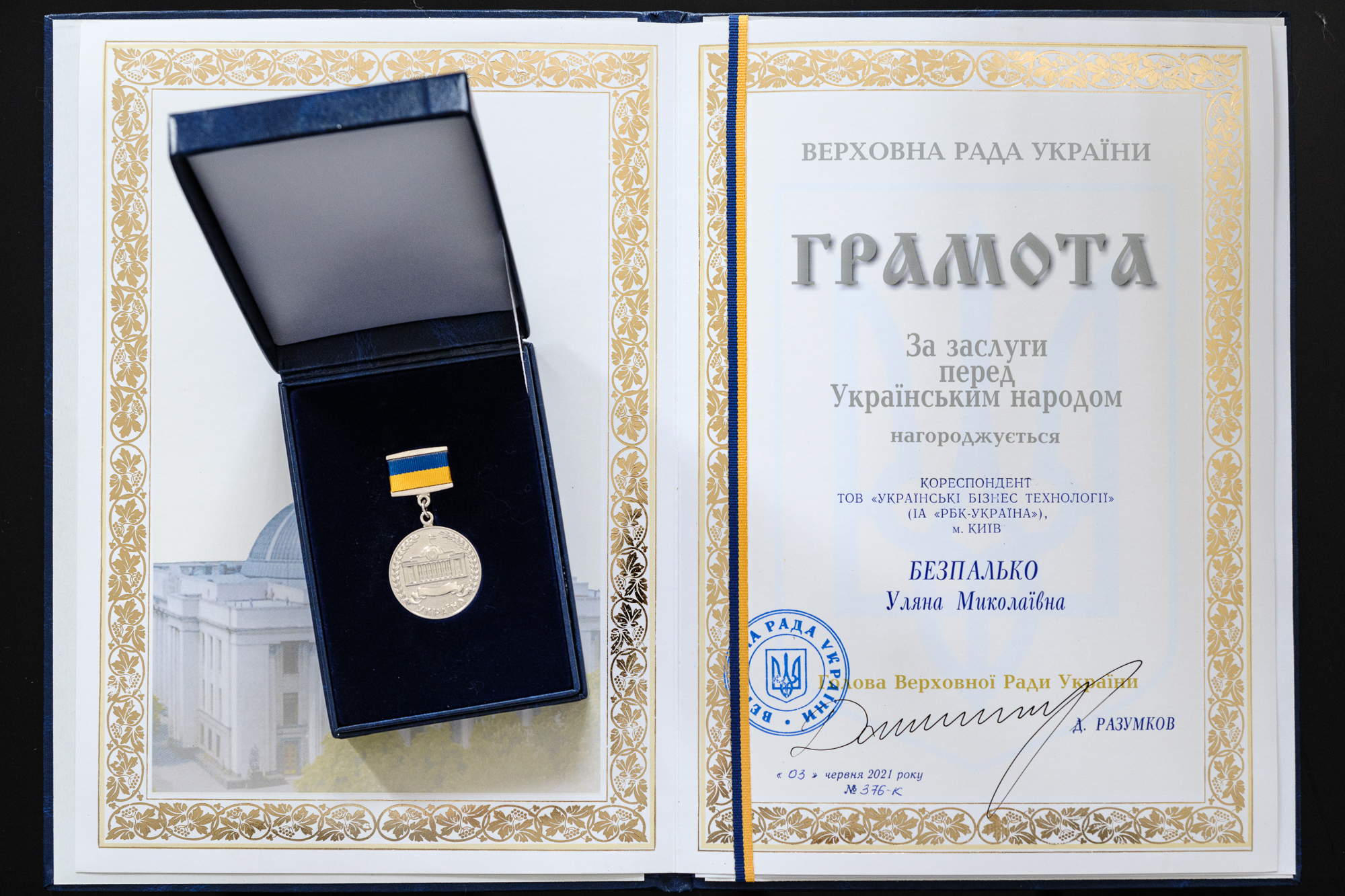 Грамотой "За заслуги перед Украинским народом" от Верховной Рады Украины 3 июня 2021 награждена Ульяна Безпалько.