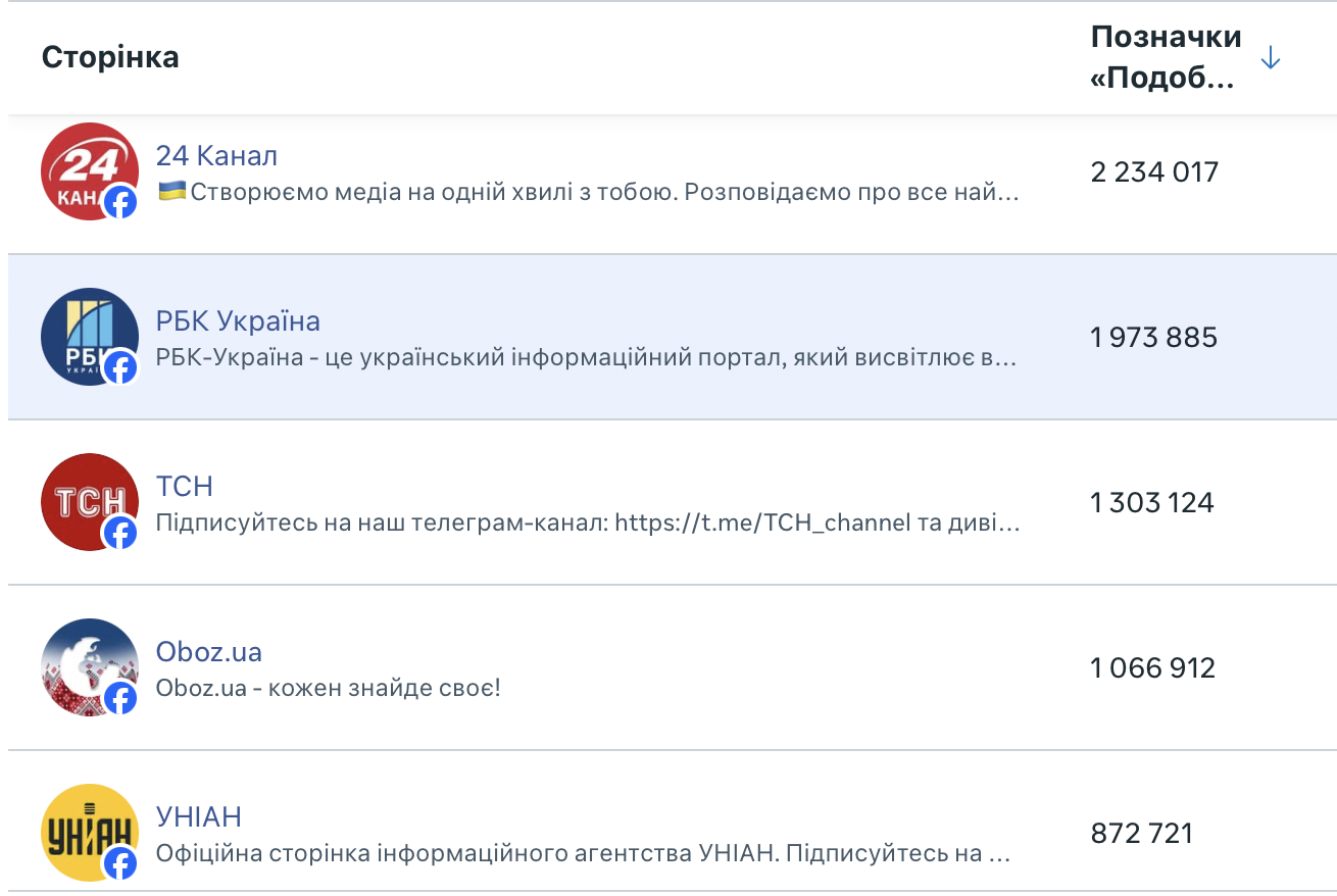 Кроме того, РБК-Украина имеет одну из самых больших в Украине аудиторий в Facebook.