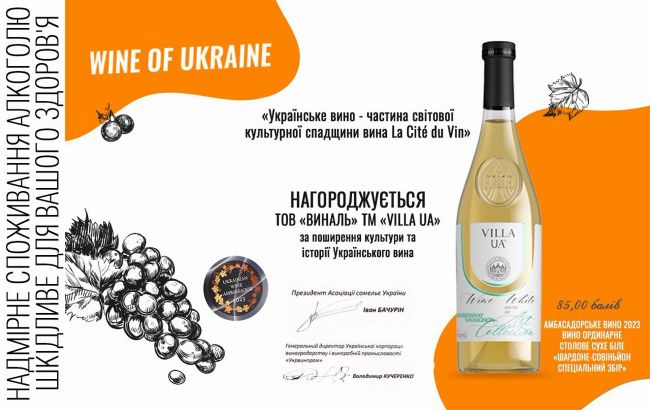 19.09.2023 - 16:13 Вино "Villa UA Chardonnay Sauvignon" получило статус винного посла Украины