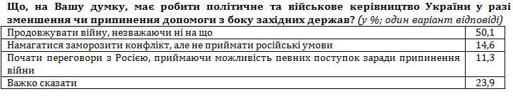 Кроме того, украинцы против переговоров и уступок России при уменьшении или прекращении помощи со стороны западных государств.