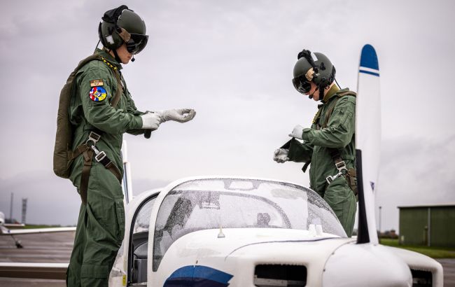 "10 пилотов прошли базовую летную, наземную и языковую подготовку в Великобритании и когда-нибудь станут первой линией обороны, защищая небо Украины от российских войск", - рассказали в украинском Генштабе.