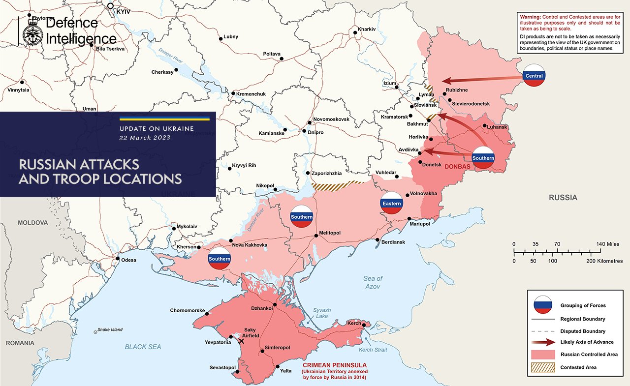 По данным британской карты, самым тяжелым участком фронта остается Донецкая область. Бои идут в районе Бахмута, Авдеевки и Угледара. Оккупанты пытаются окружить и захватить населенные пункты.