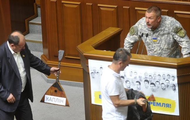 Під час ранкового засідання Верховної Ради народні депутати фракції "Народний фронт" вручили російський народний музичний інструмент балалайку депутатам Сергію Капліну, Дмитру Добродомову і Бориславу Березі, які, як свідчить листування Марії Столярової з телеканалу "Інтер", потрапили у парламент завдяки підтримці Кремля. Про це повідомляє прес-служба НФ.