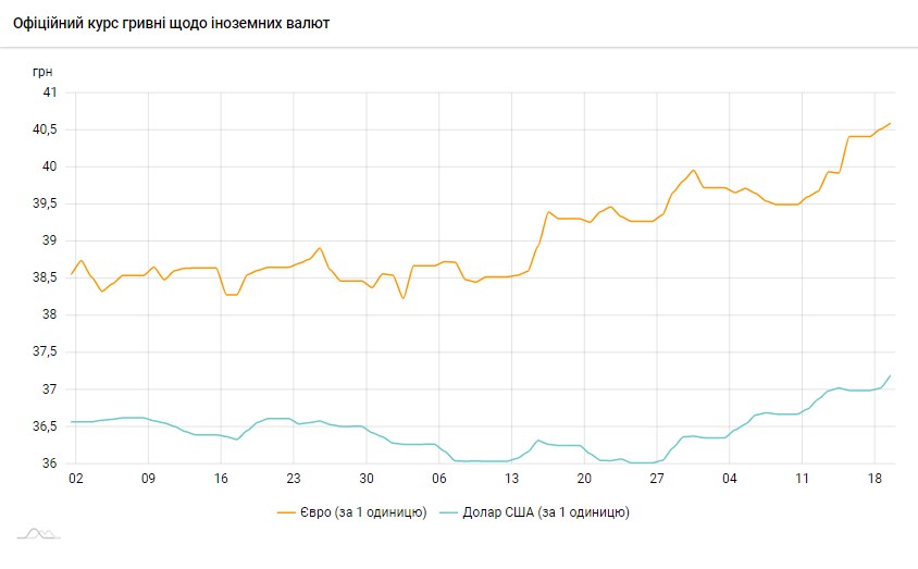 Курс евро составит 40,9219 гривен за 1 евро (+0,3301 грн). Курс определяется котировками на международном рынке пары евро/доллар и не зависит от НБУ.