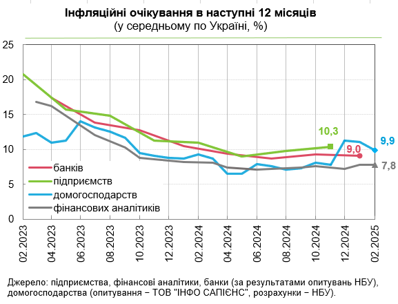 Инфляционные ожидания населения улучшаются второй месяц подряд. Население в феврале ожидало инфляцию в 9,9% после 11,0% в январе и 11,3% в декабре.