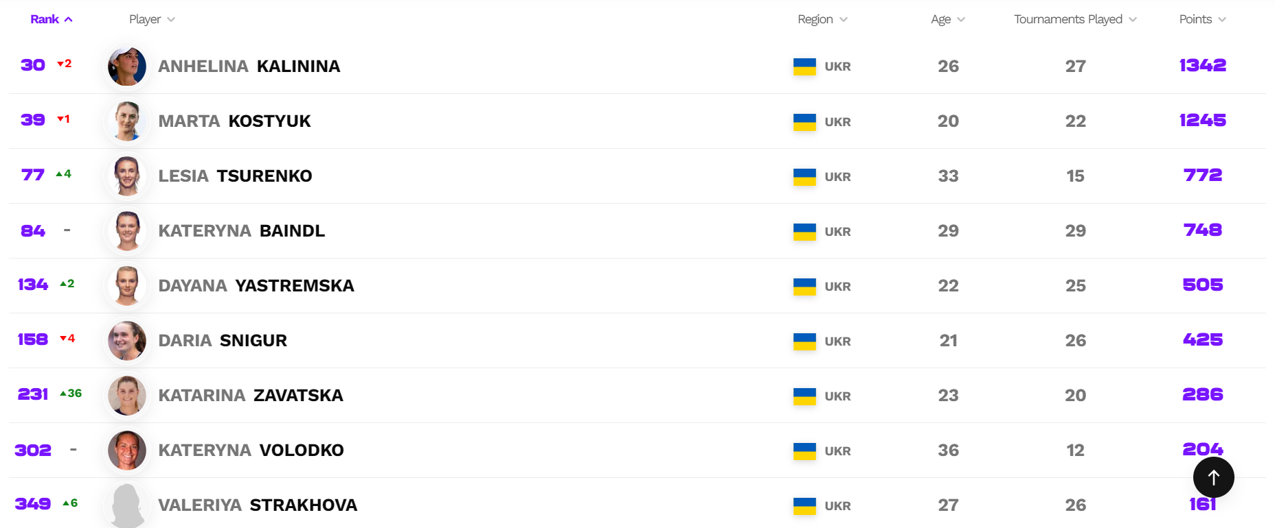 Обе украинки удержались в топ-40 рейтинга. Правда, с потерями: Калинина опустилась на две позиции (30-е место), а Костюк – на одну строчку (39-е место).