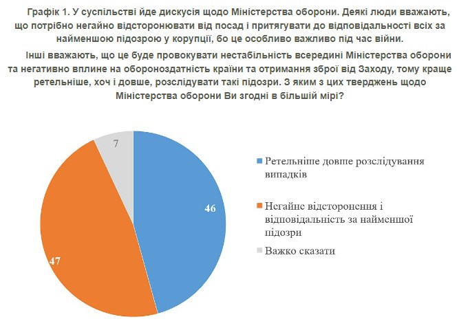 Вопрос о реакции на коррупционный скандал в Министерстве обороны поляризовал украинцев. Немедленных кадровых решений требует половина украинцев.