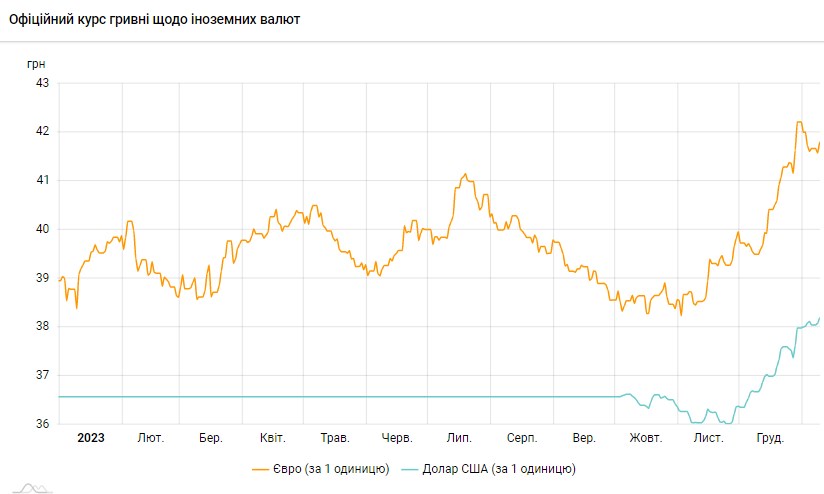 Данные НБУ свидетельствуют, что официальный курс НБУ за 2023 год вырос на 3,9% - с 36,57 грн/доллар до 37,98 грн/доллар.