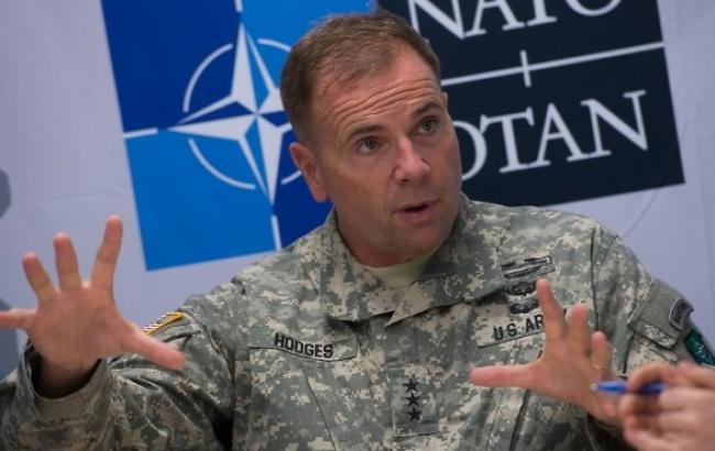 У східній межі України розташовуються десять російських батальйонів. Про це заявив командувач американськими силами в Європі Фредерік Бен Ходжес під час свого візиту на базу НАТО в міста Щецин на північному заході Польщі, передає Reuters.