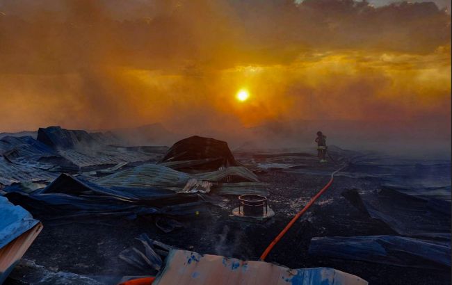 Под Николаевом из-за падения обломков дрона РФ начался масштабный пожар на предприятии