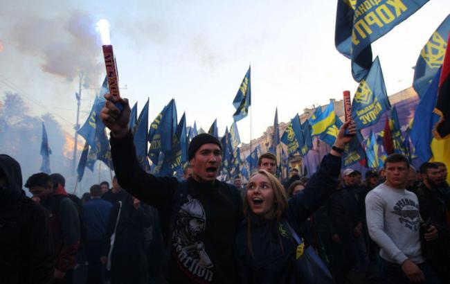 Марш націоналістів у центрі Києва пройшов мирно. Фото: Віталій Носач/РБК-Україна