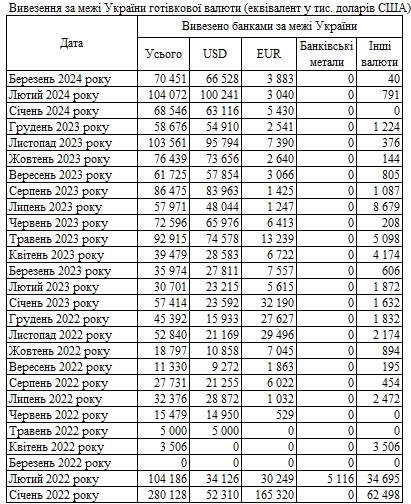 По данным НБУ, за март из Украины вывезли валюты на 70 млн долларов.