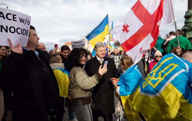 "Большая часть тех, кто сегодня был на митинге, был и несколько лет назад. Но сегодня это был другой митинг, потому что на митинге присутствовало несколько тысяч украинцев украинской общины, немцев, которые пришли нас поддержать", - рассказывает Порошенко.