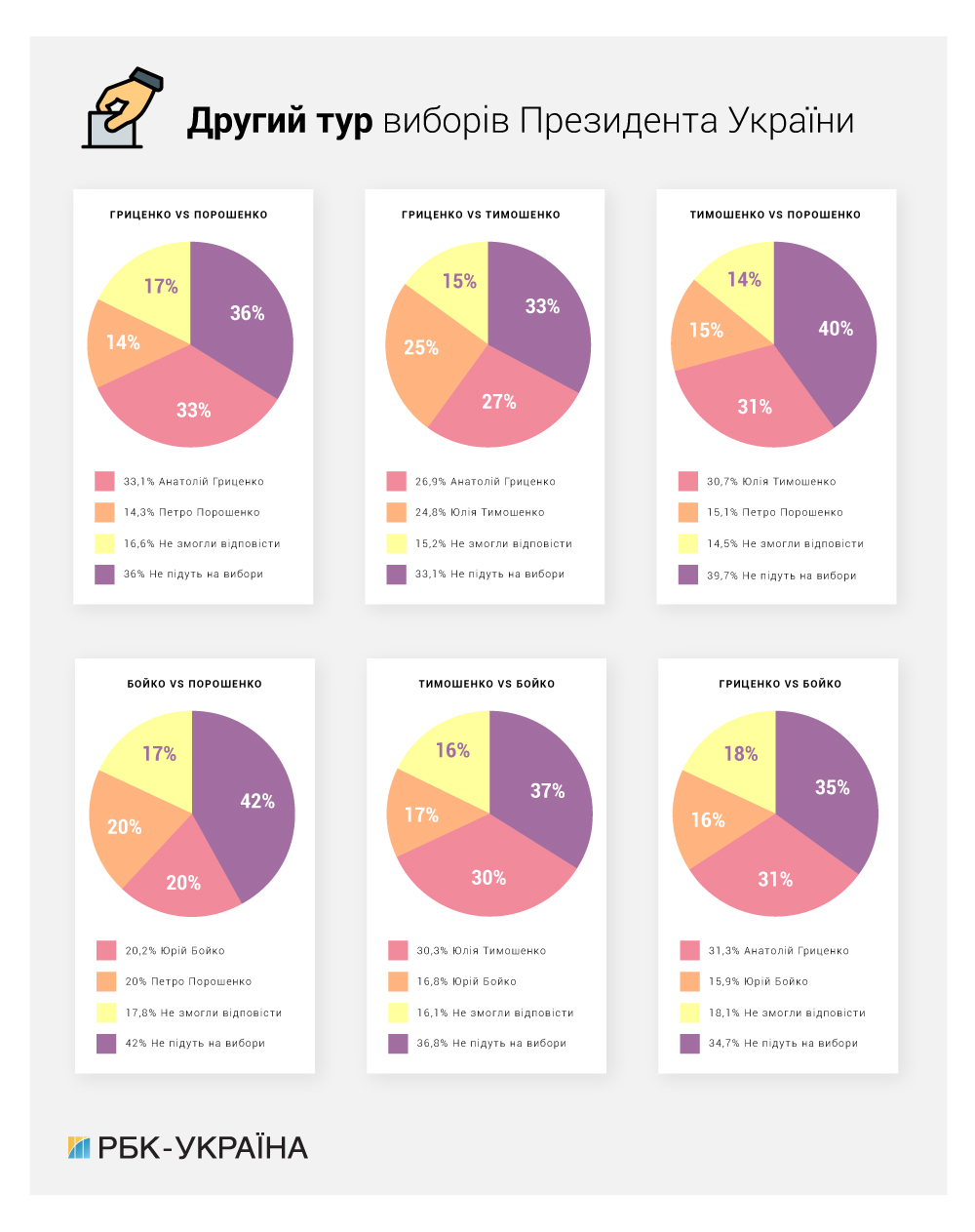 Респонденти повинні були відповісти, за кого б вони проголосували на 6 запропонованих парах: