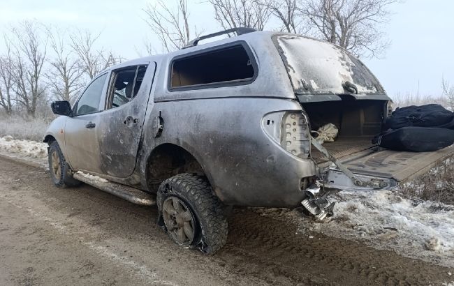 Фото: в Купянске россияне атаковали авто полиции (t.me/police_kh_region)