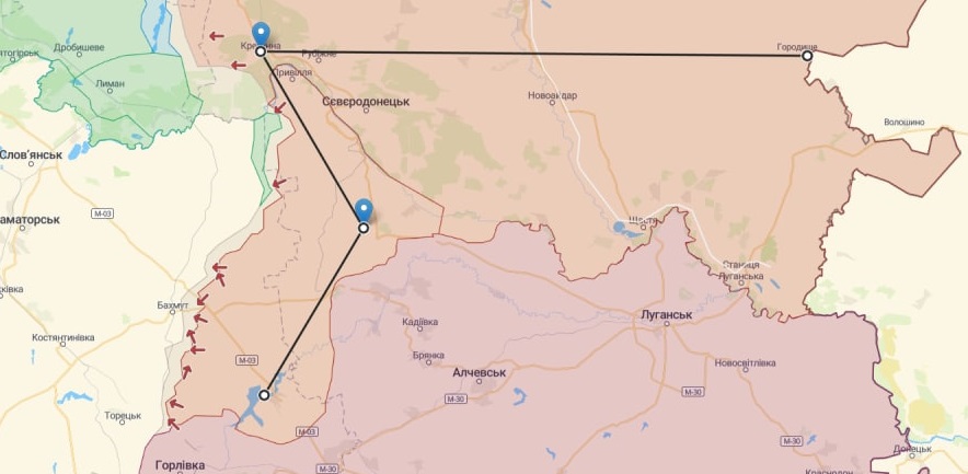 Вероятные планы россиян по постройке противотанковых укреплений на карте (нажмите, чтобы увеличить)